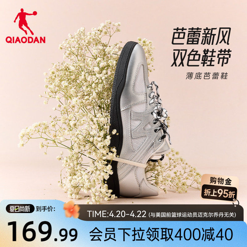 乔丹芭蕾鞋复古银色休闲鞋女运动鞋2026新款薄底轻质德训鞋女鞋子