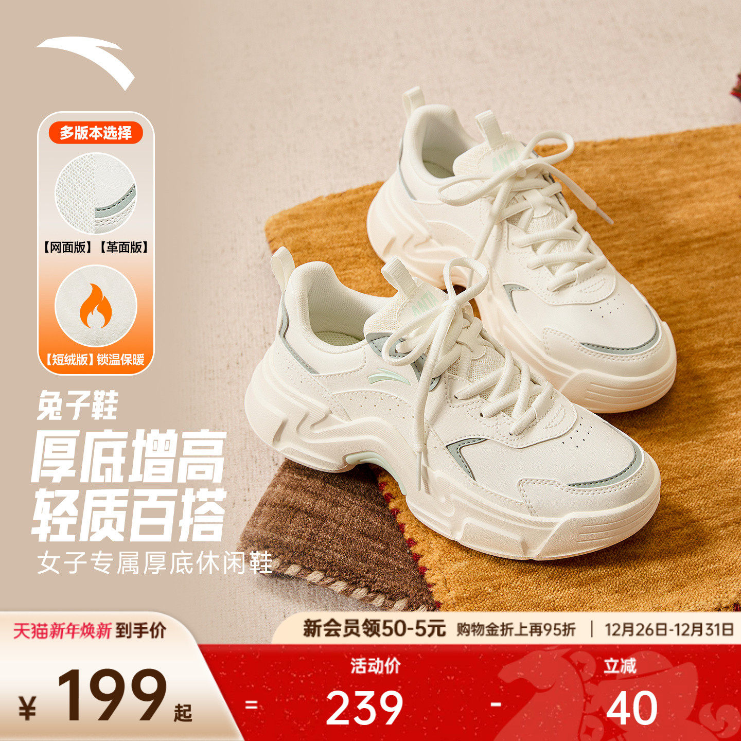 安踏兔子鞋丨软底休闲鞋女厚底增高运动鞋加绒保暖二棉鞋舒适女鞋