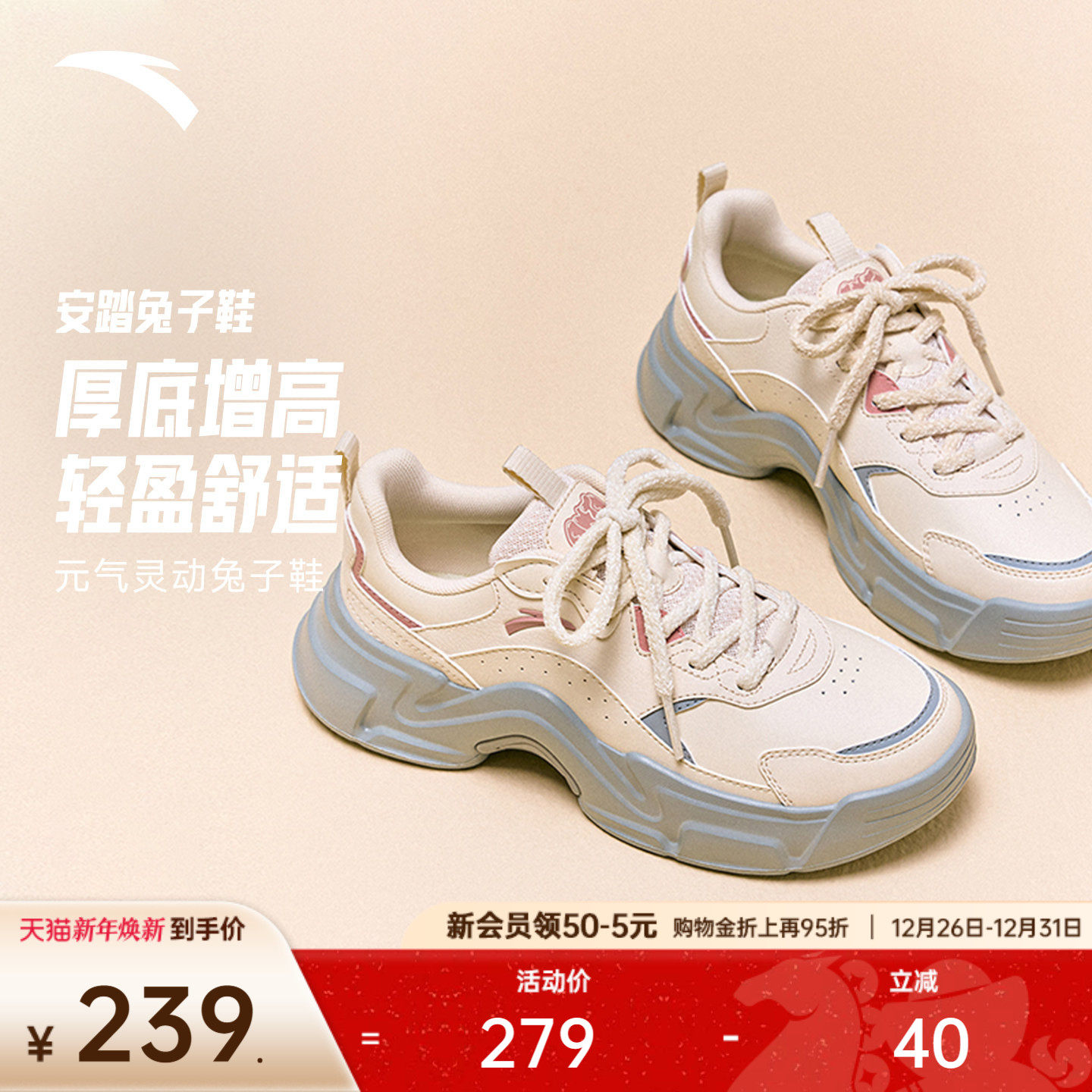 安踏猫爪鞋女鞋喵喵鞋2025新款小白鞋厚底增高运动鞋子老爹鞋官方
