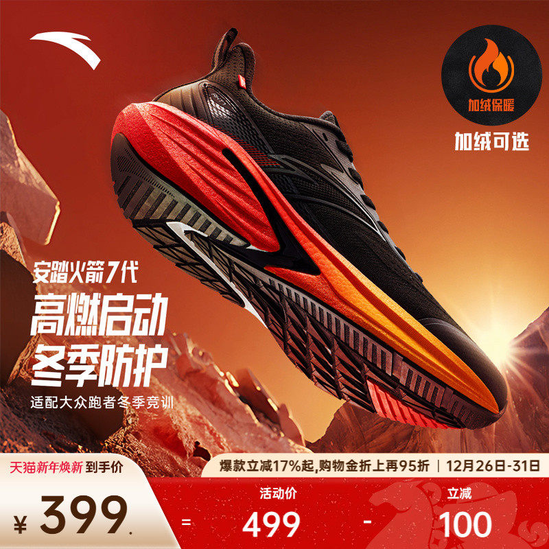安踏火箭7代丨防泼水抓地加绒跑鞋男女冬季耐磨运动鞋112545581