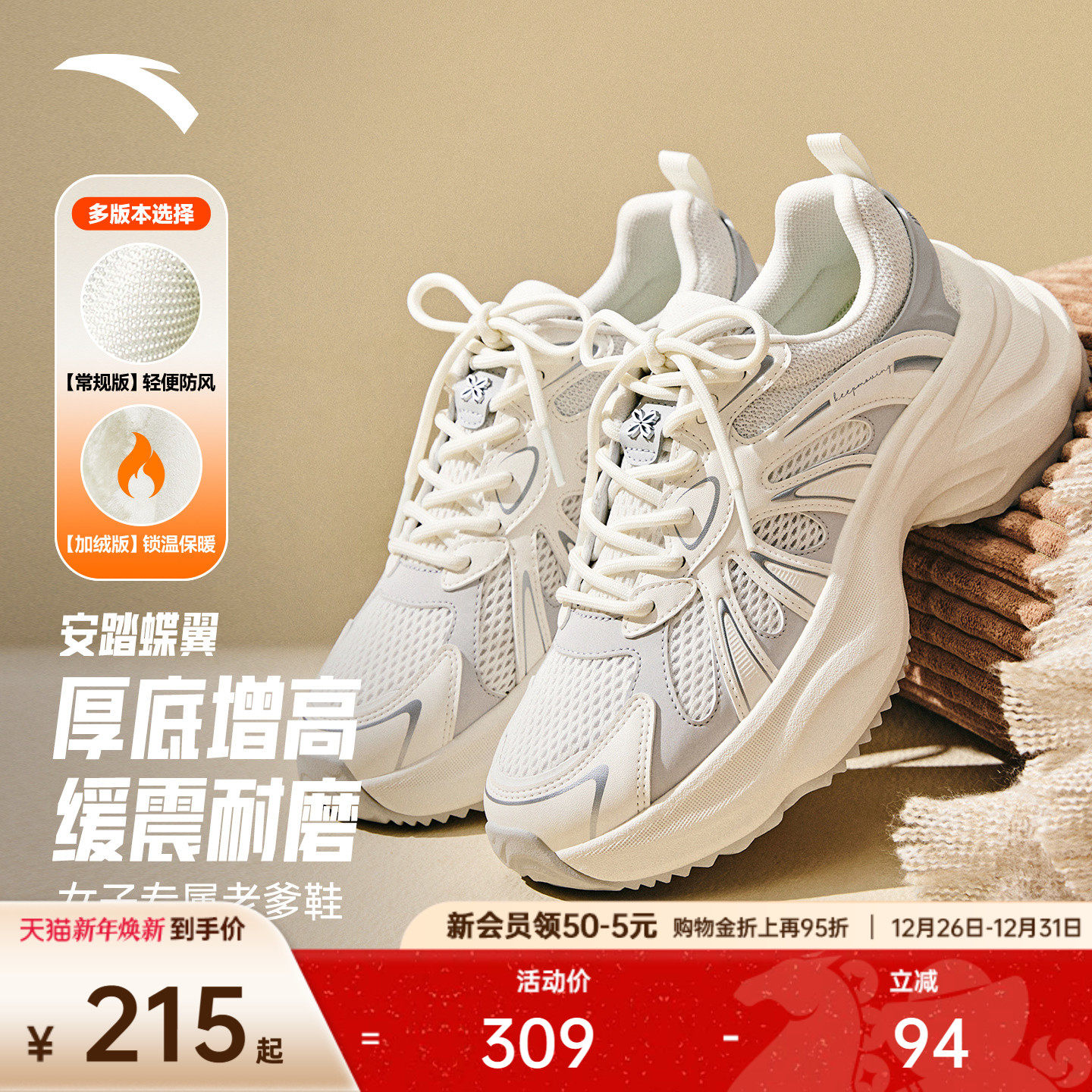 安踏蝶翼丨厚底增高银色加绒保暖休闲鞋女冬季时尚老爹鞋运动鞋子