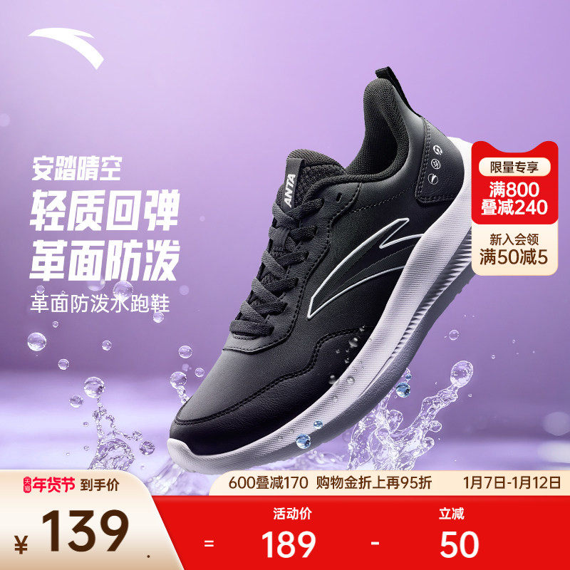 安踏叶子6丨轻质软底防泼水跑步鞋女鞋轻便耐磨运动鞋有氧慢跑鞋