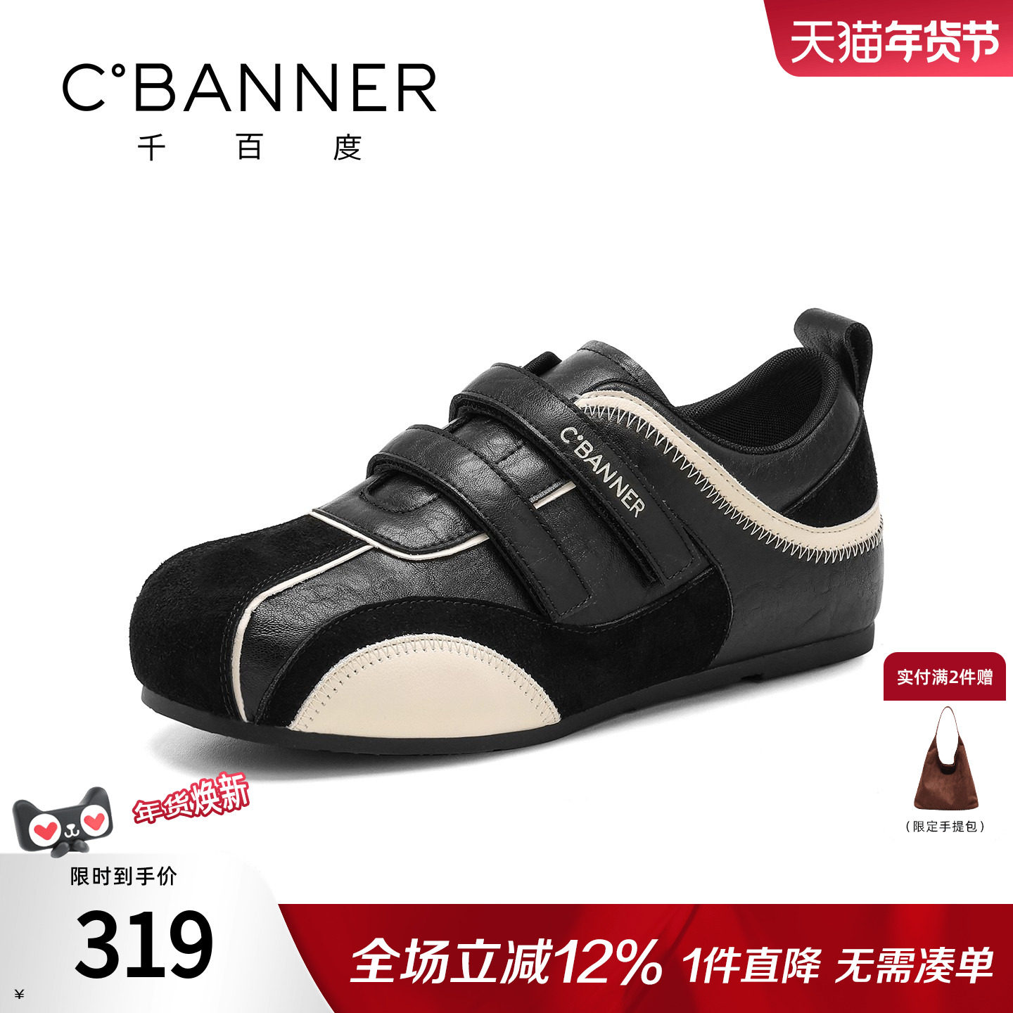 骆驼熊猫德训鞋女鞋2026春季新款新年红色户外休闲运动鞋女阿甘鞋