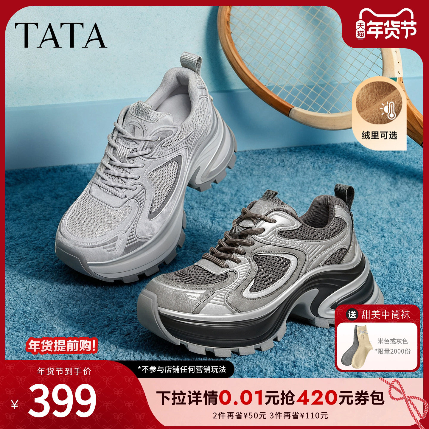 TATA他她女鞋2026春季新款休闲运动鞋百搭厚底增高老爹鞋5OG29AM6