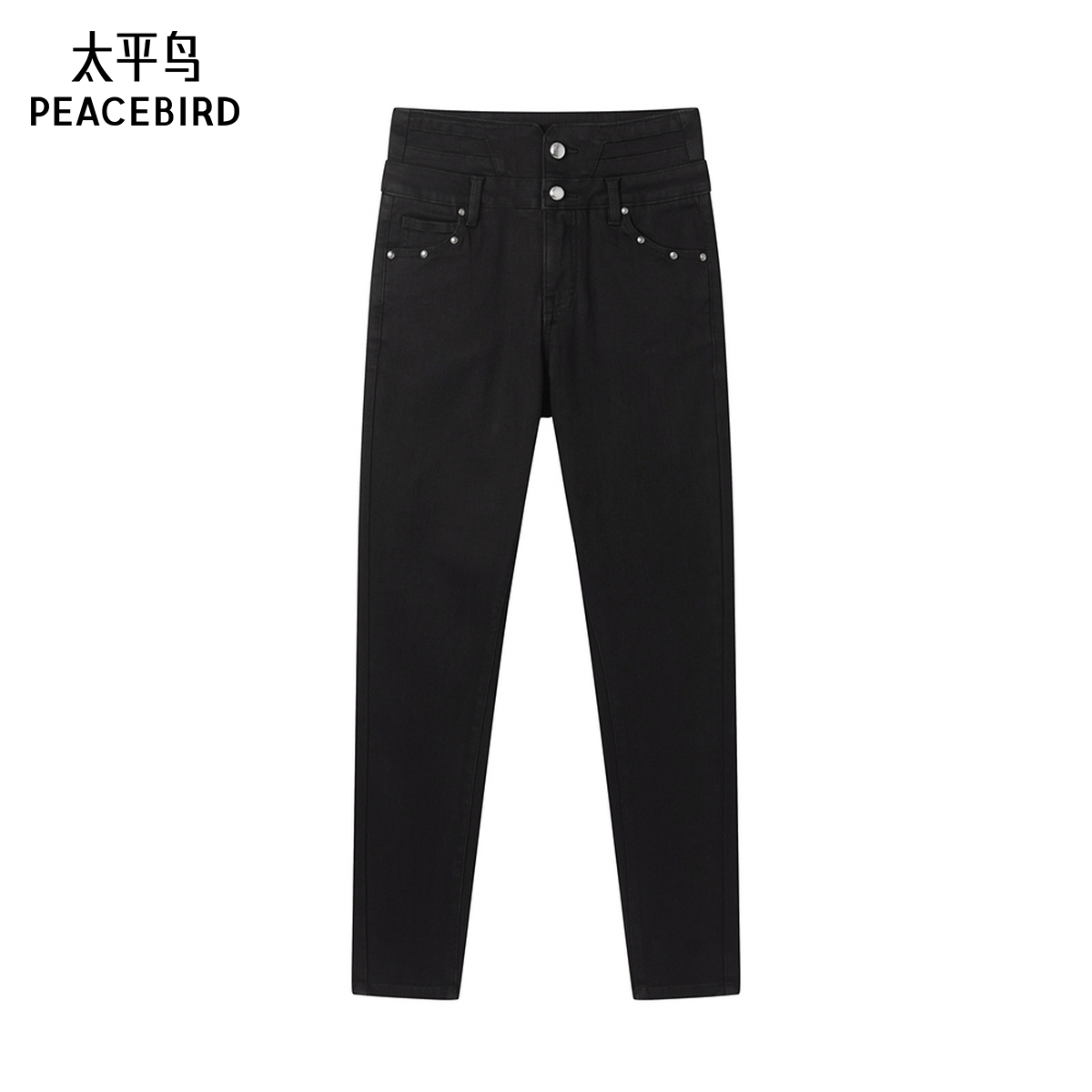 太平鸟高腰紧身小脚牛仔裤2025年冬季修身铅笔牛仔裤女A3HAE4441