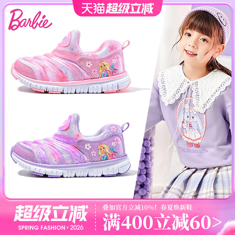 芭比童鞋毛毛虫加绒女童运动鞋2025新款秋冬一脚蹬休闲鞋儿童鞋子