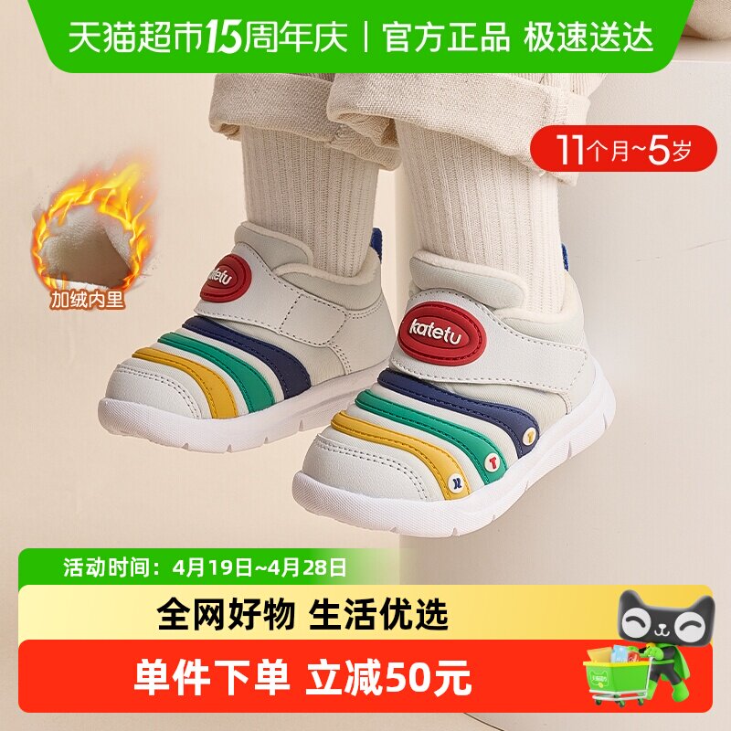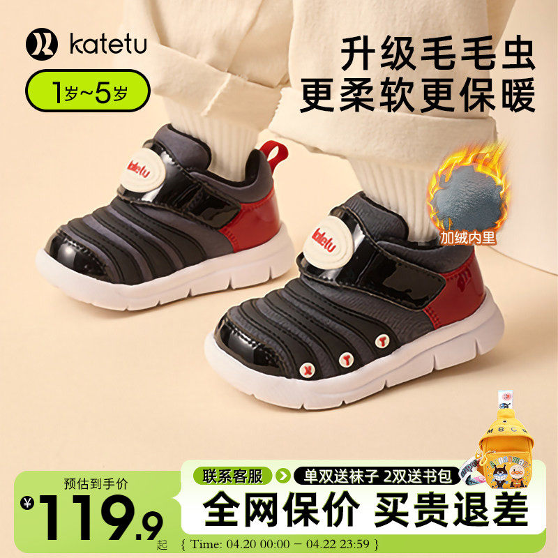 卡特兔童鞋2024新款男童加绒毛毛虫女童保暖棉鞋宝宝冬季机能鞋