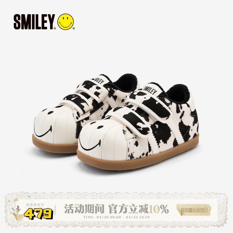 SMILEY笑脸贝壳头白黑奶牛冬季加绒女增高毛毛虫丑萌棉鞋面包鞋子