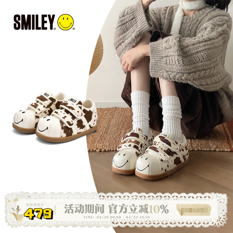 SMILEY笑脸贝壳头白棕奶牛冬季加绒女增高毛毛虫丑萌棉鞋面包鞋子