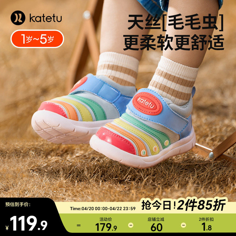 巴布豆旗舰官方店儿童春秋毛毛虫童鞋男女冬季加绒运动鞋小童网鞋