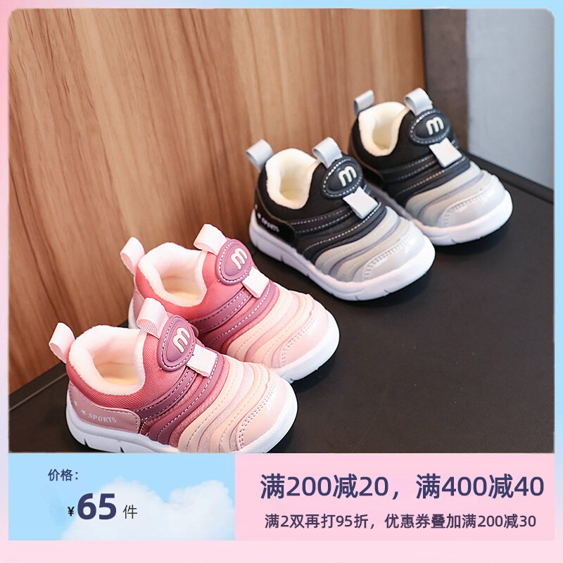 撤柜毛毛虫男女童鞋春秋透气一脚蹬宝宝防滑耐磨加绒运动鞋学步鞋