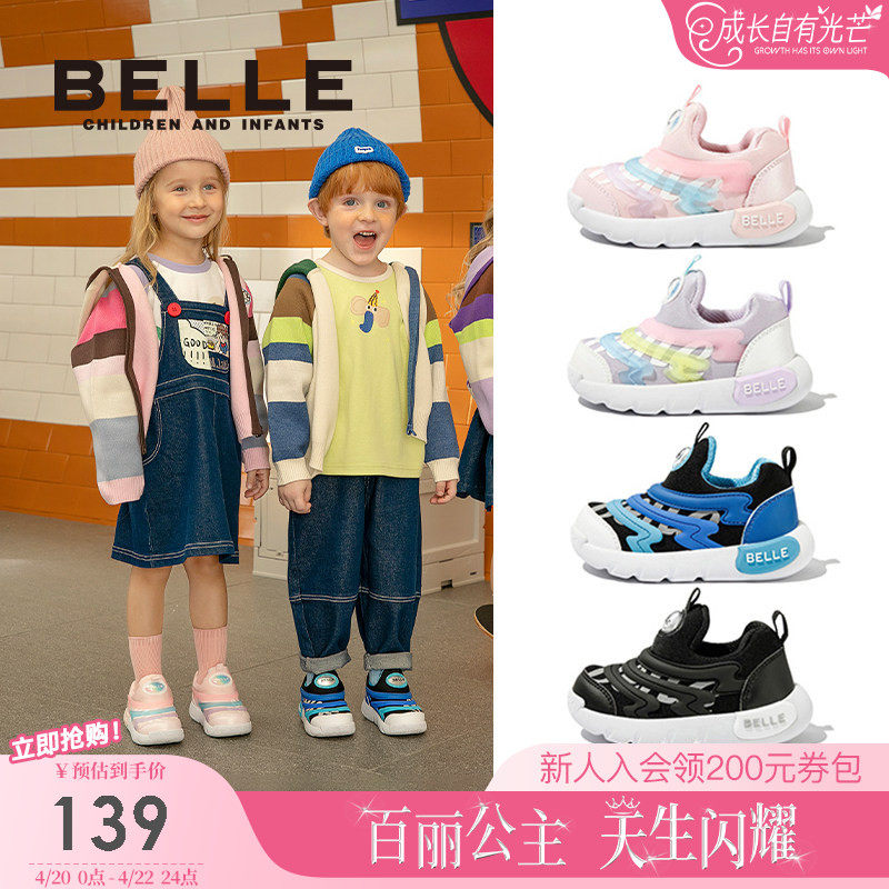 百丽童鞋毛毛虫女童休闲鞋一脚蹬春季款男童加绒运动鞋幼儿园鞋子