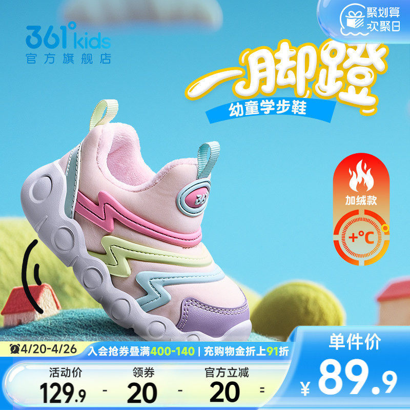 361童鞋女童保暖棉鞋2025冬季新款加绒幼童宝宝毛毛虫一脚蹬鞋子