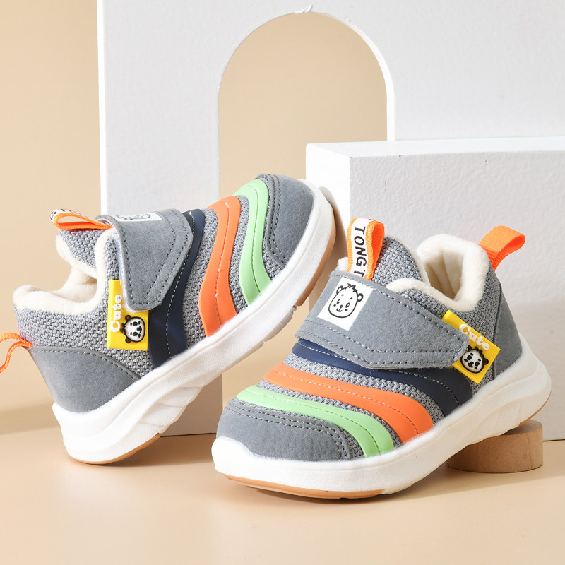 巴布豆童鞋男女童运动鞋秋冬季软底加绒毛毛虫宝宝机能鞋儿童鞋子