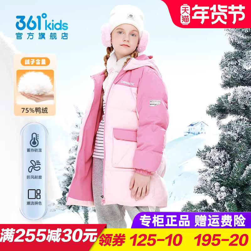 361童装女童长款羽绒服 儿童加厚保暖外套2025冬季小学生大衣风衣