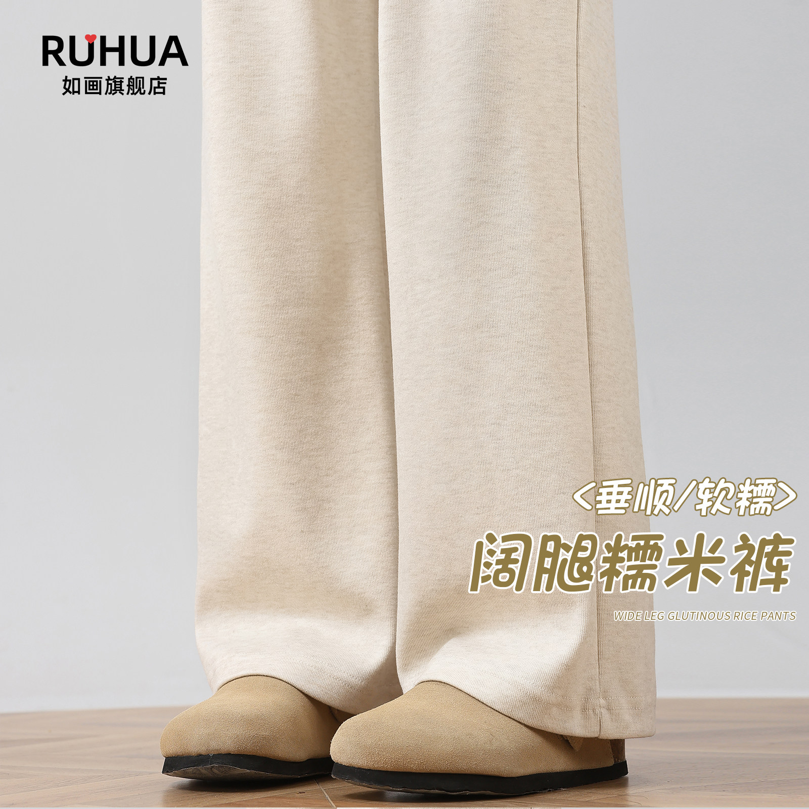 糯米裤女2026新款秋冬垂坠感软糯小个子宽松直筒白色加绒阔腿裤子