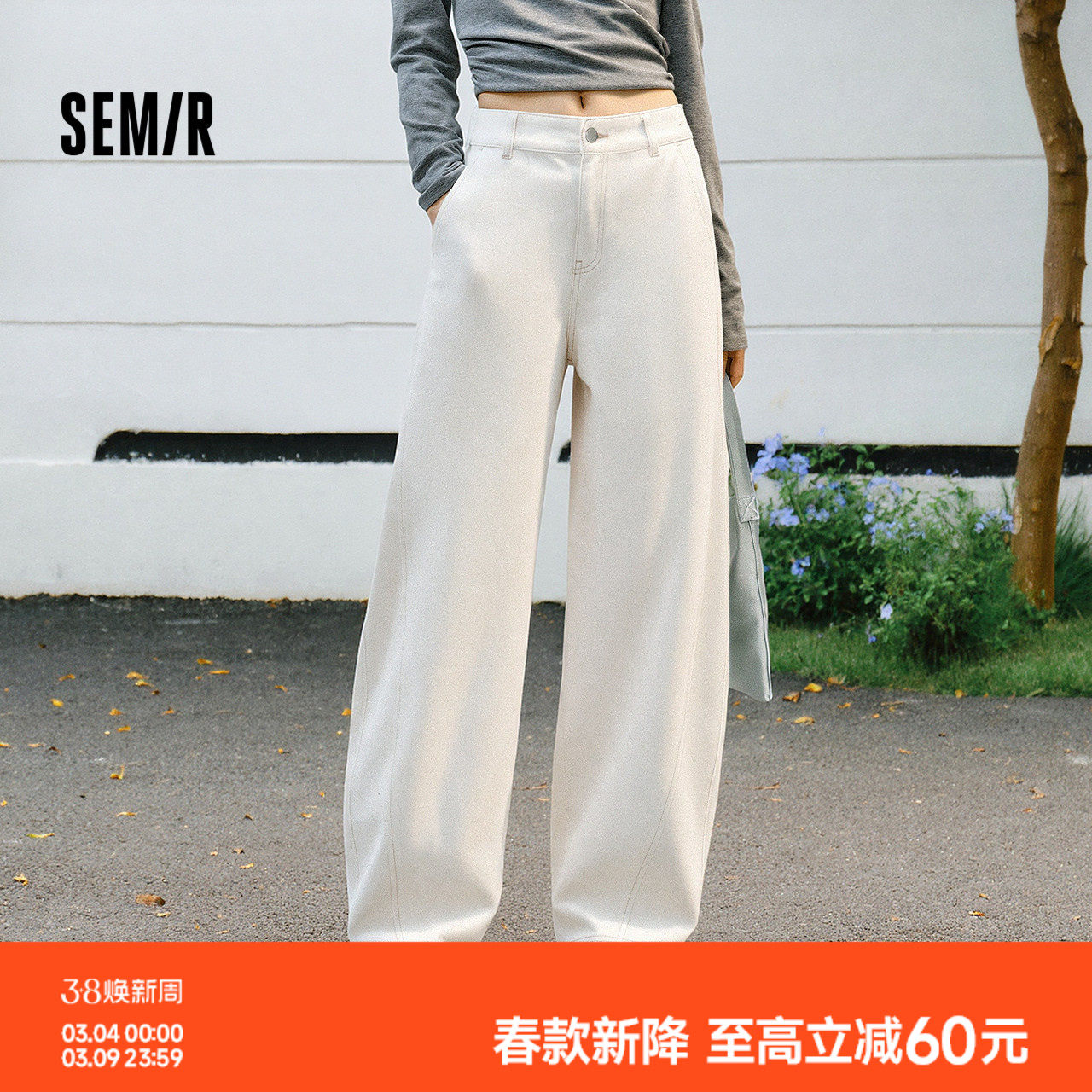 森马休闲裤女肌理长裤宽松2026新款弯刀裤微弹灰白色裤子韩里韩气