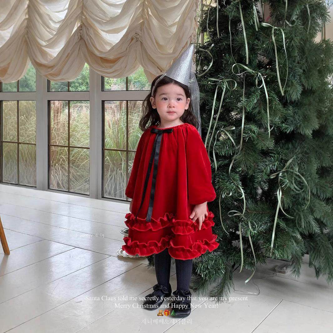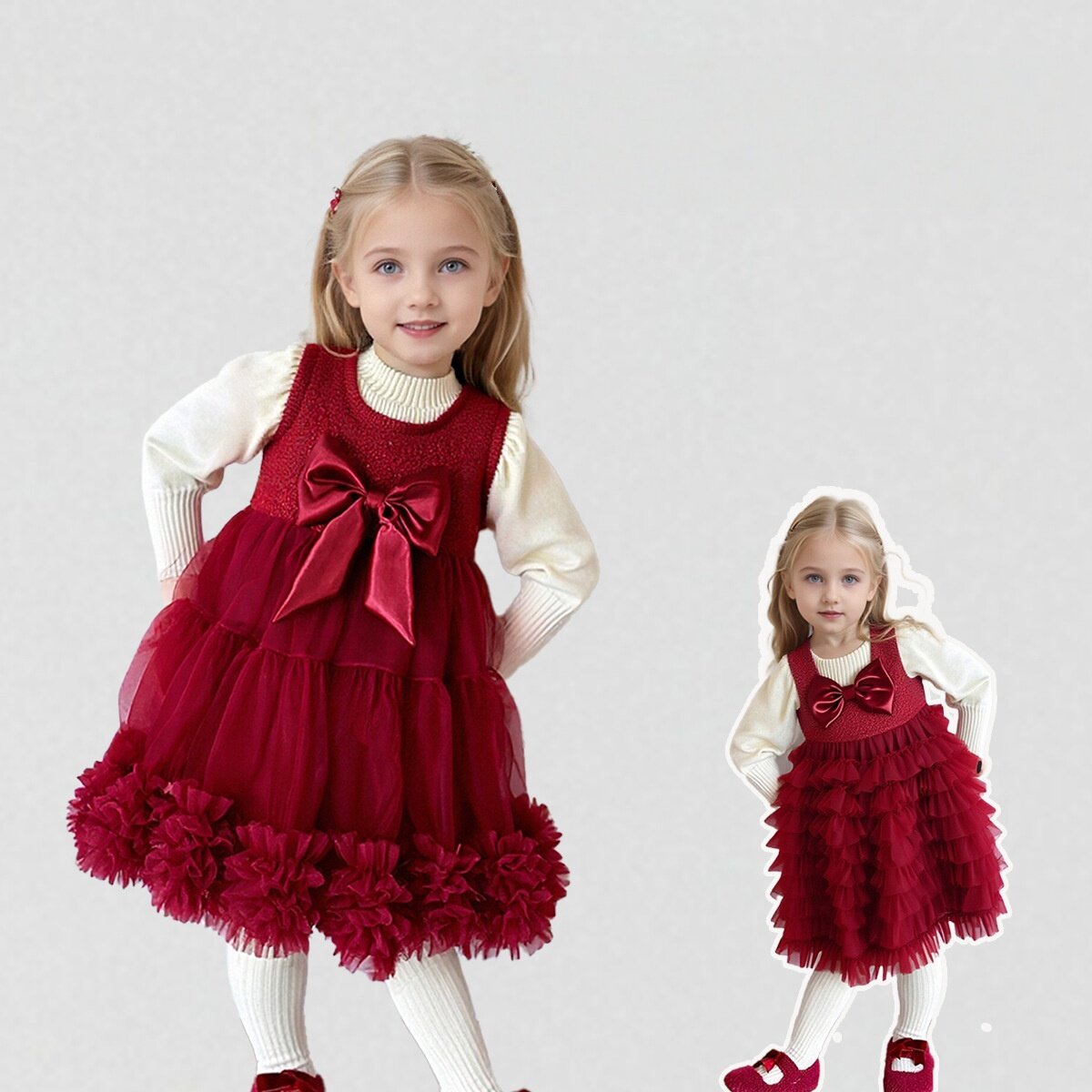 春秋冬款女童韩版红色背心连衣裙新年周岁生日宴会礼服蛋糕公主裙