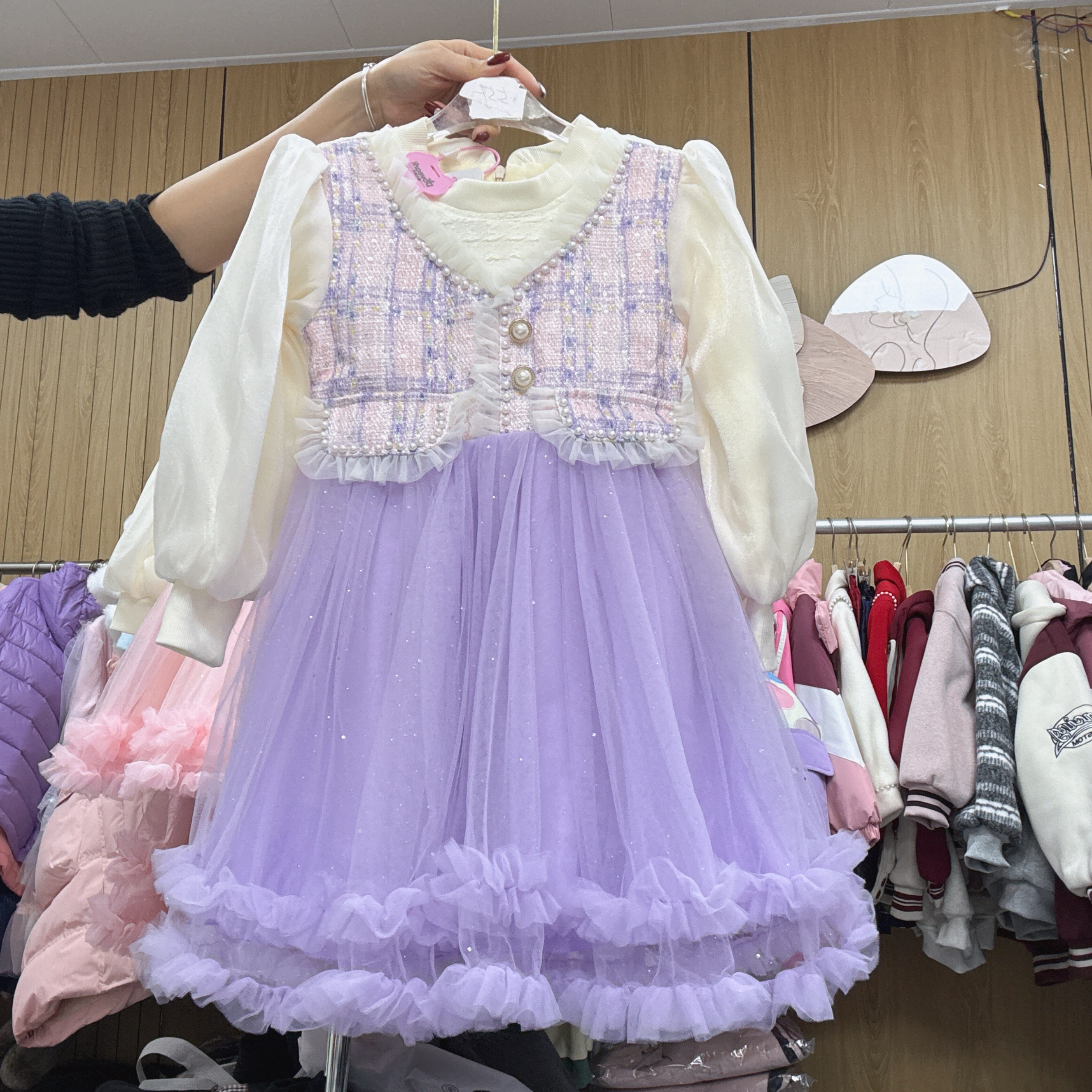 25年春秋韩版童装 女童柔软到没朋友全棉长袖蓬蓬纱裙公主连衣裙