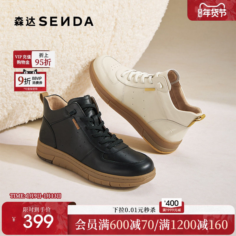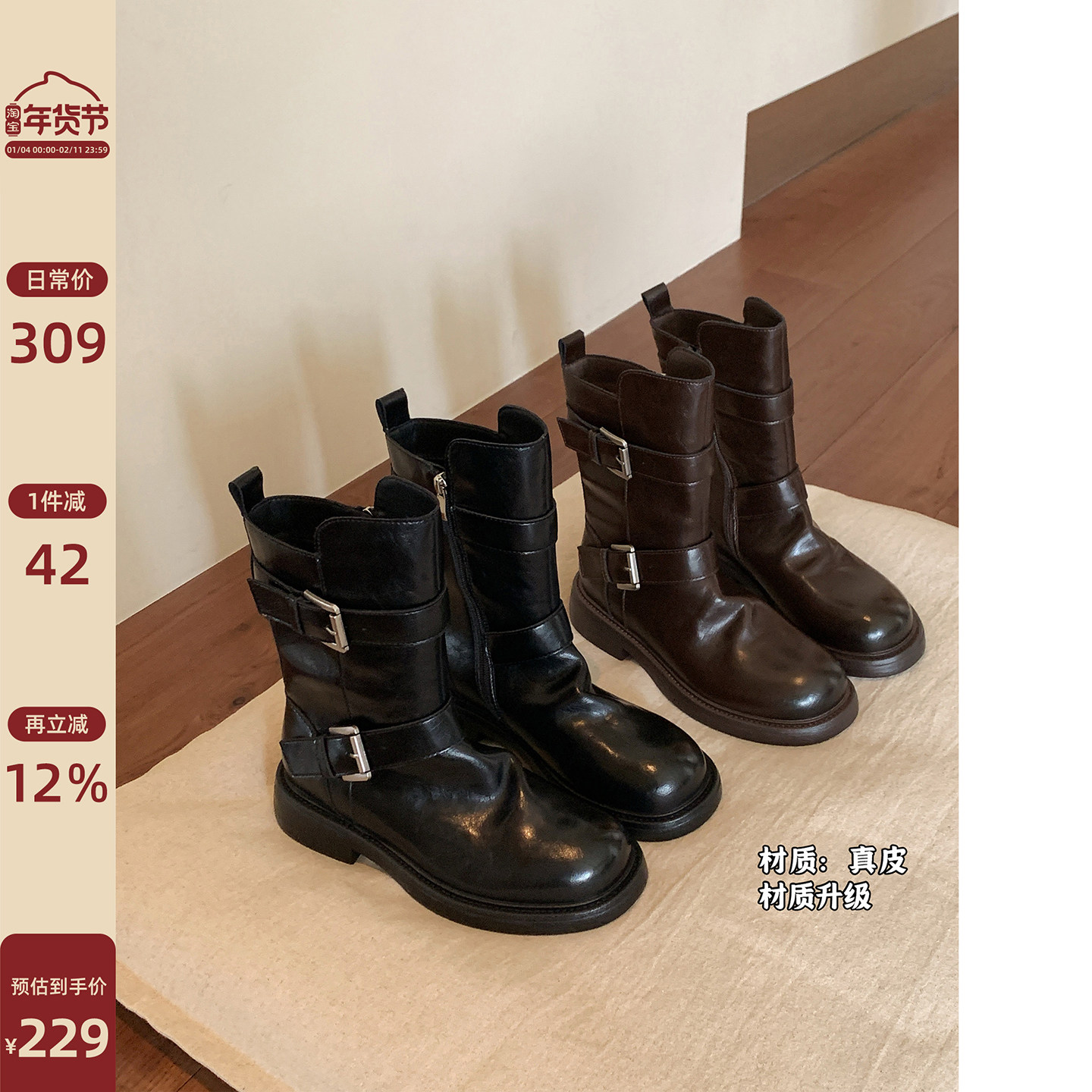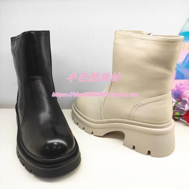 - 厚底女靴子 短靴 真皮