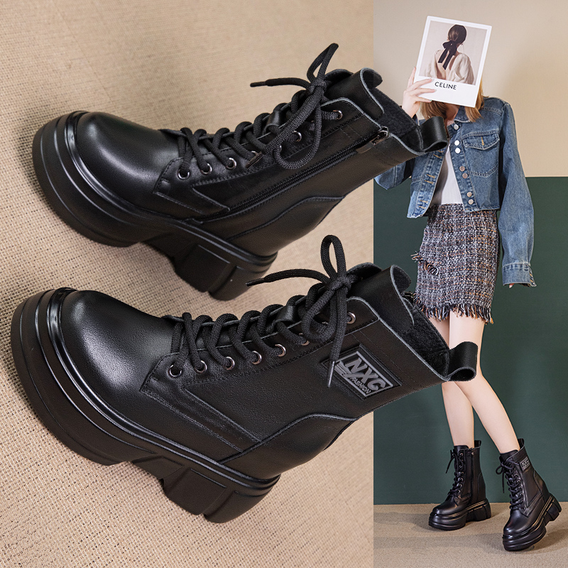 欧洲站增高短靴女2025秋冬新款真皮松糕厚底时尚百搭休闲马丁靴