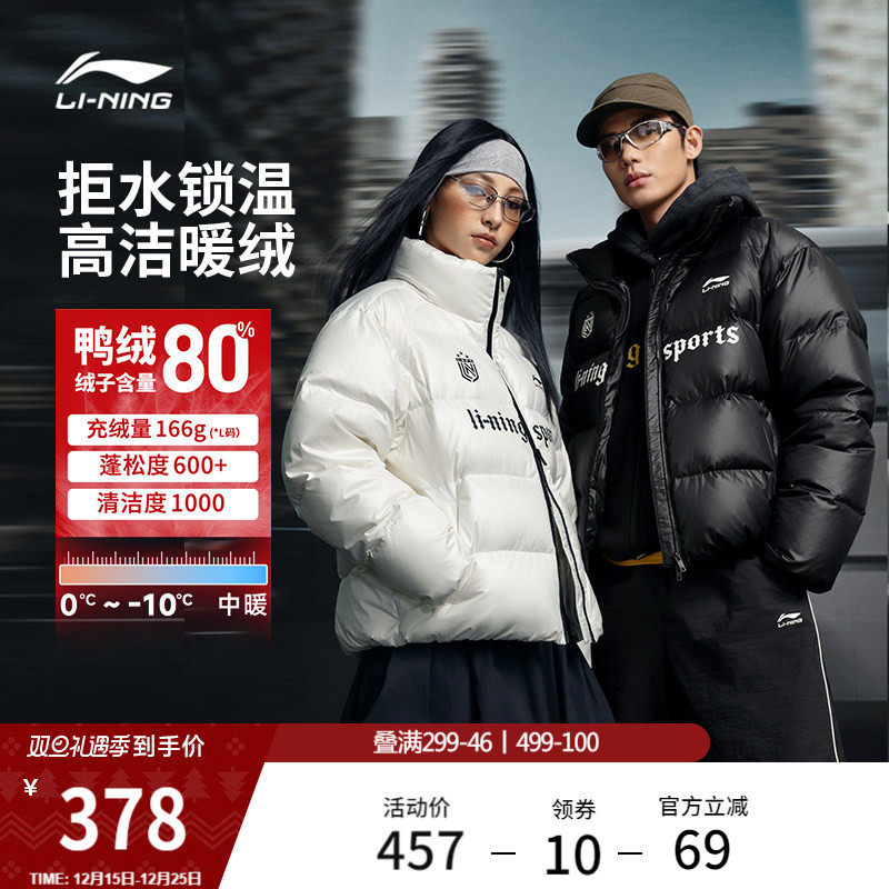 李宁火锅羽绒服丨情侣冬季短款衣服女派克工装红色保暖运动外套男