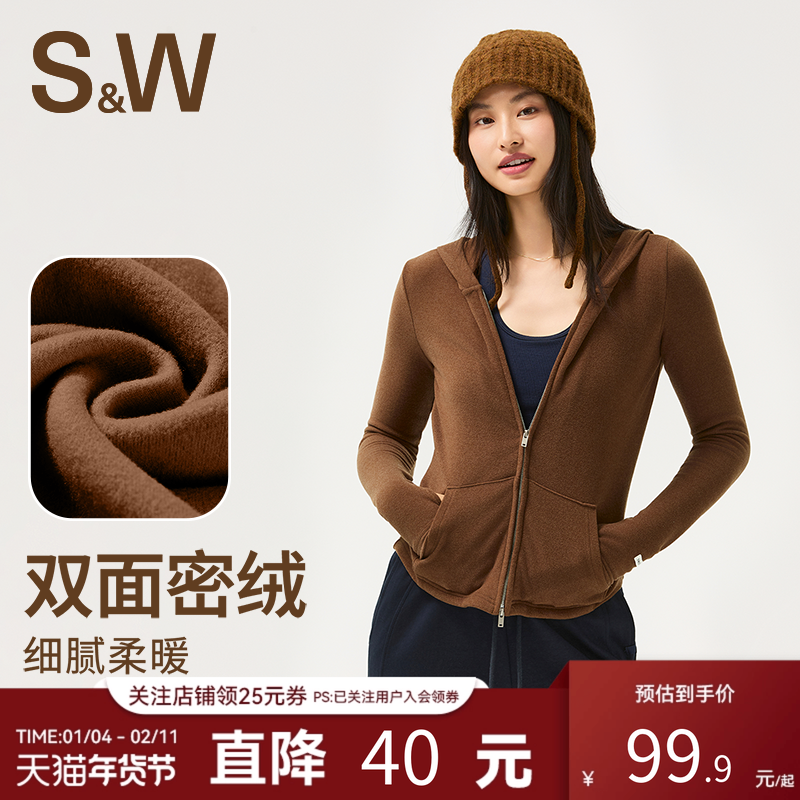 SW速惟开衫连帽运动卫衣女2025秋季薄款双面抓绒短款拉链保暖外套