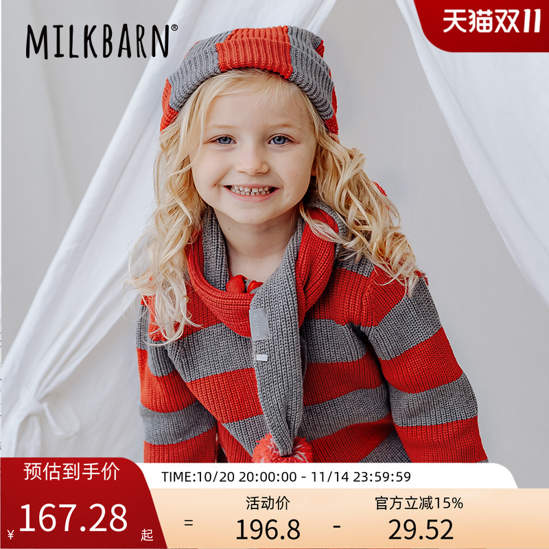 Milkbarn婴儿套头帽子宝宝圣诞百搭彩条帽儿童秋冬款童帽