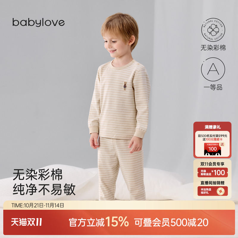 babylove宝宝内衣套装春秋季彩棉分体家居服婴幼儿纯色睡衣