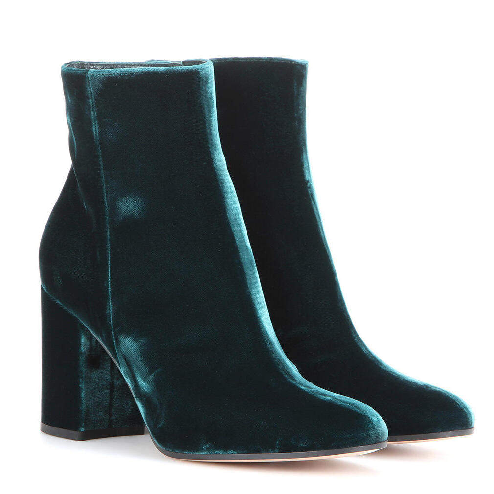 欧美女士宴会天鹅绒踝靴圆头粗跟短靴成都女鞋厂家供货时装靴绒面