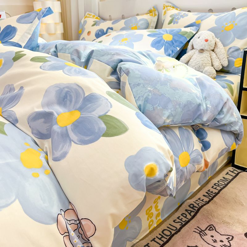 ins全棉四件套学生三件套0.9床笠款三件套60支纯棉卡通被套四件套