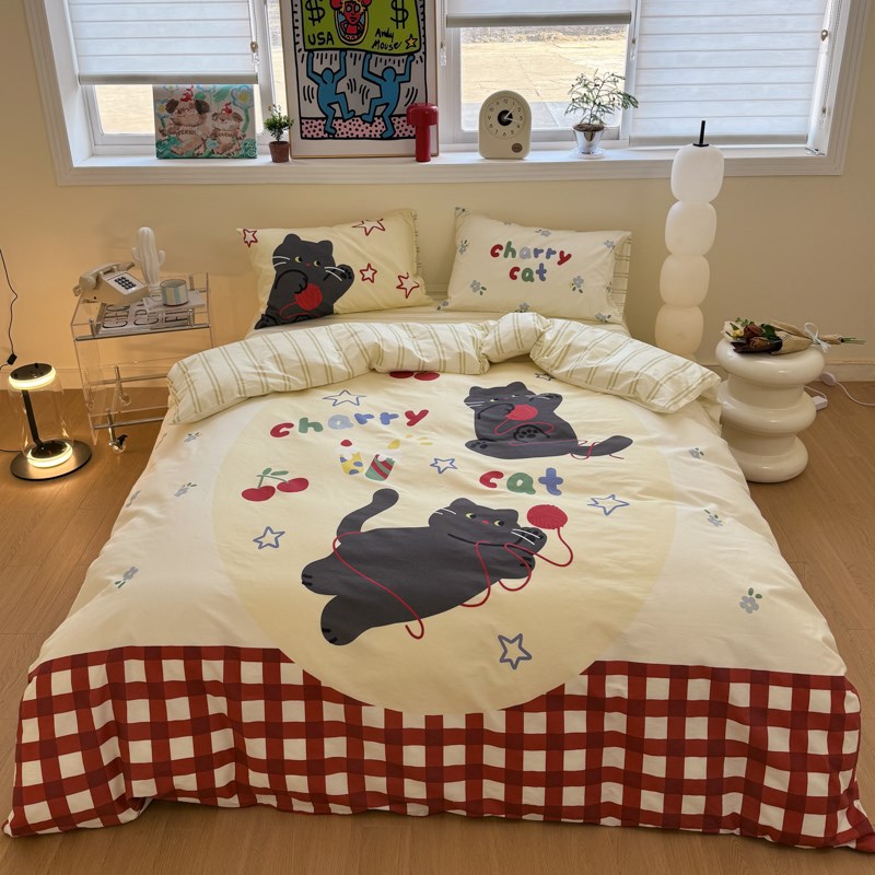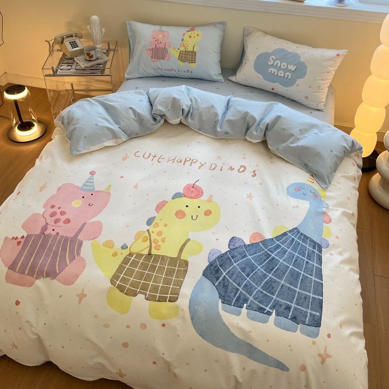 可爱卡通全棉床上四件套100纯棉亲肤儿童被套床单三件套ins风床品