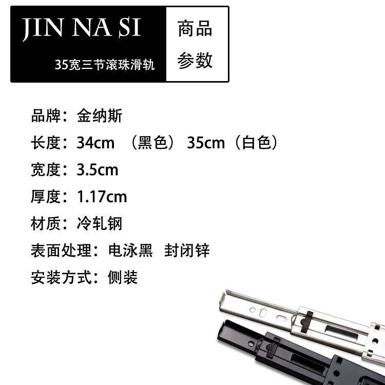 金纳斯24cm抽屉轨道10寸小三节滑轨路轨25cm茶几电视柜滑道宽35全