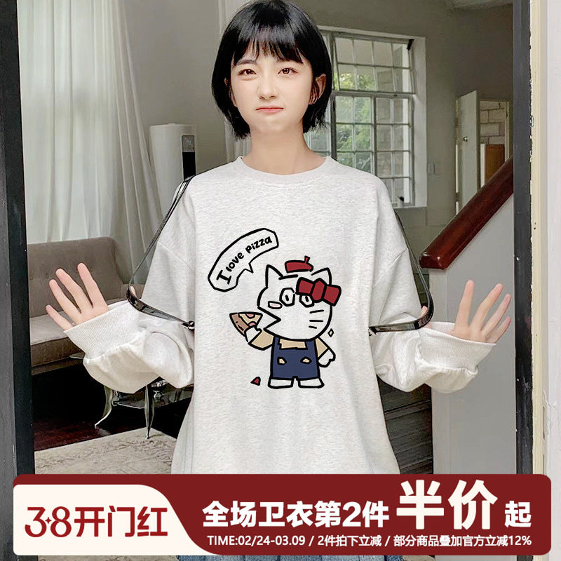 ulzzang宽松设计感凯蒂猫印花ins圆领卫衣女2026秋冬加绒加厚内搭