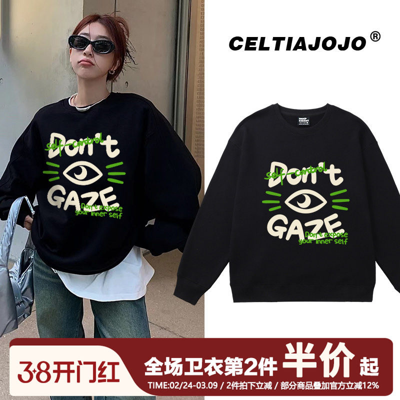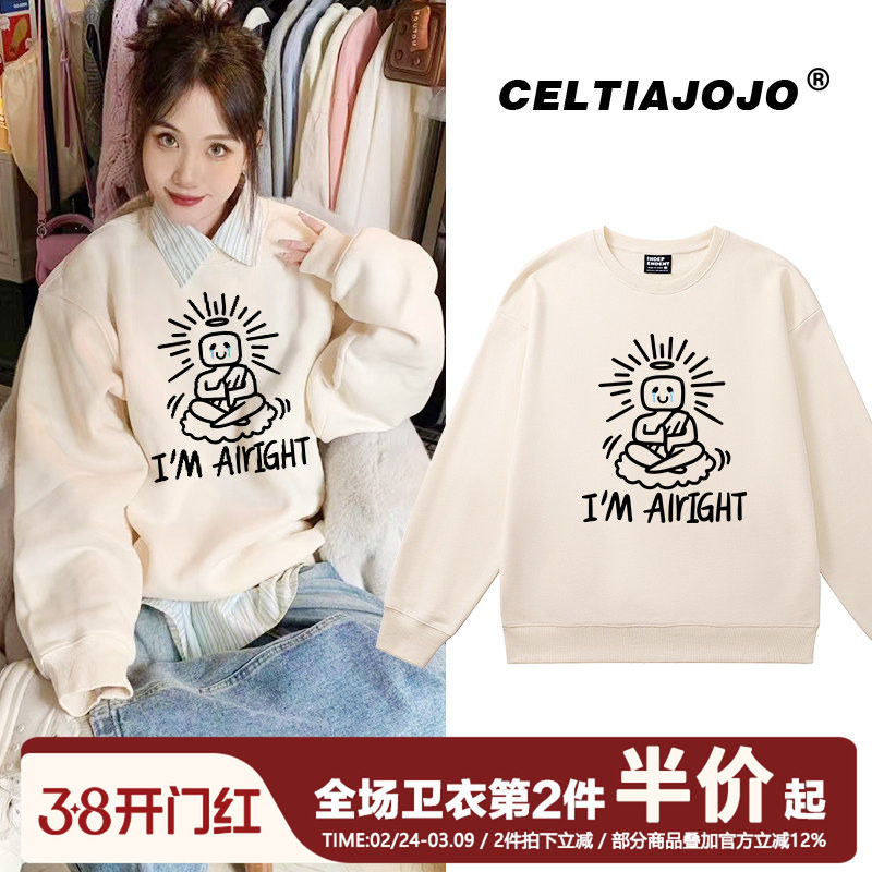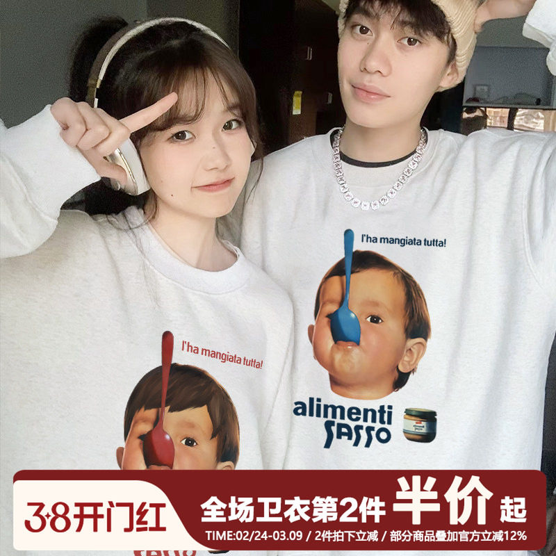 美式复古宽松ulzzang小众慵懒风圆领卫衣2026秋冬加绒加厚情侣装