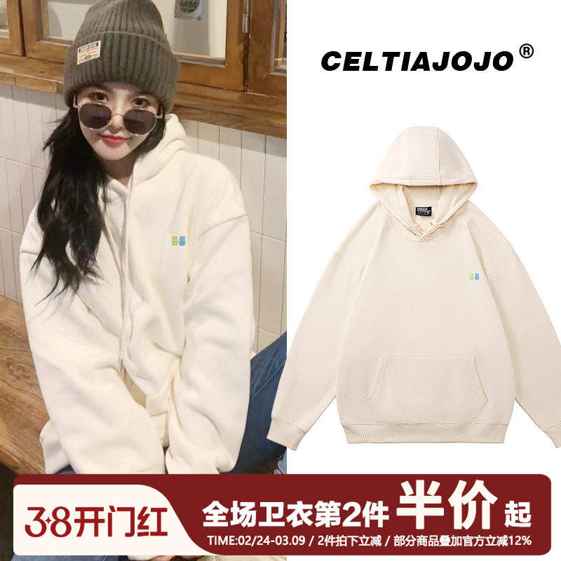 国潮连帽ulzzang卫衣女春秋加绒ins潮牌宽松情侣上衣超火cec外套