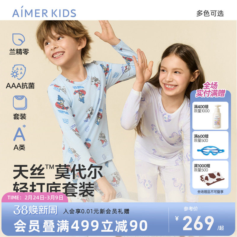 爱慕儿童3A抗菌莫代尔保暖套装男女孩打底内衣薄秋衣秋裤小马宝莉