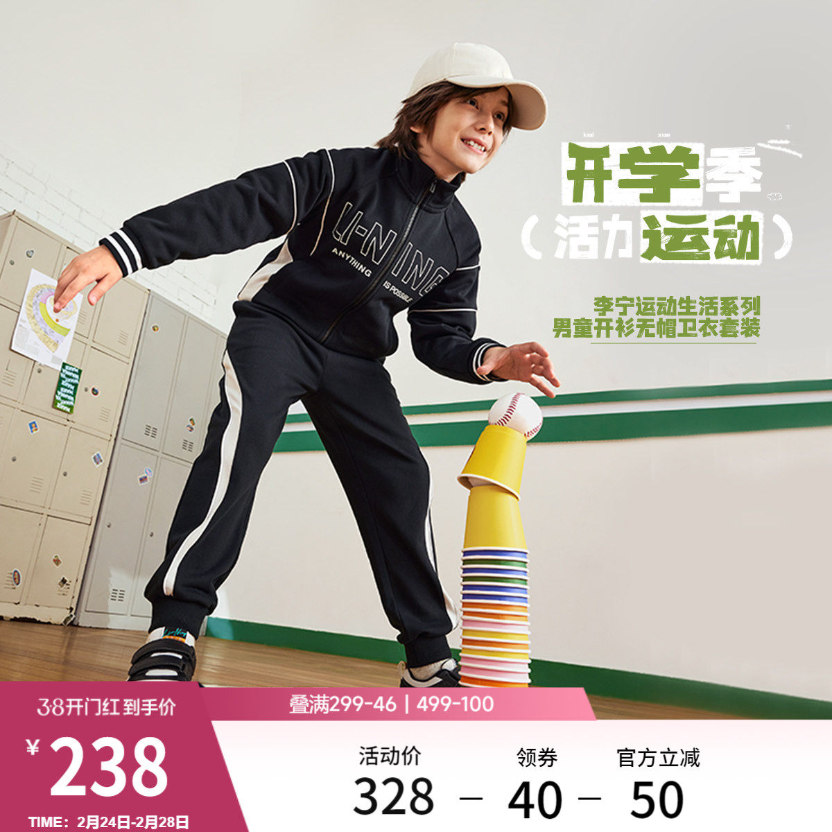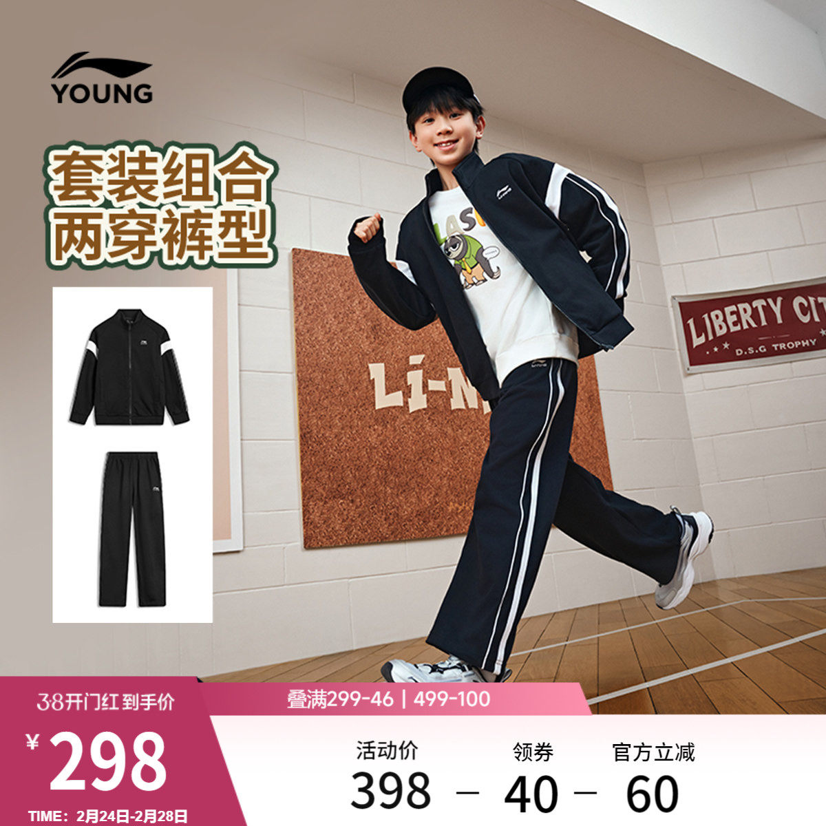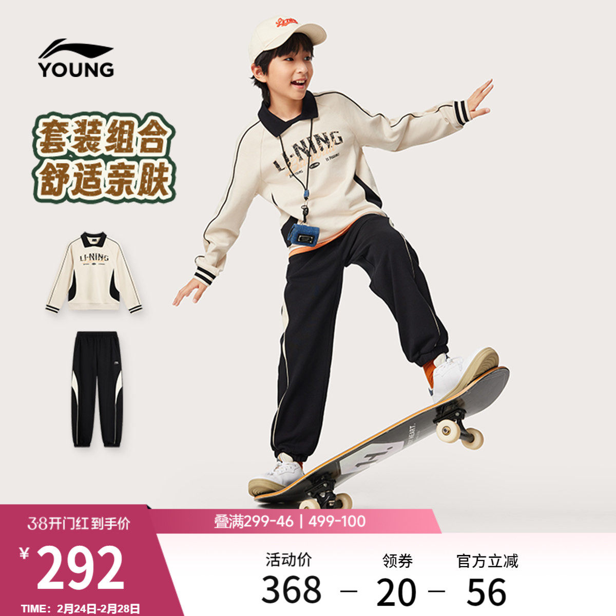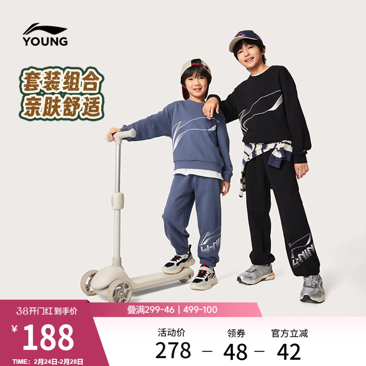 李宁童装套装男女大童新款常规运动生活系列卫衣卫裤春季休闲童装
