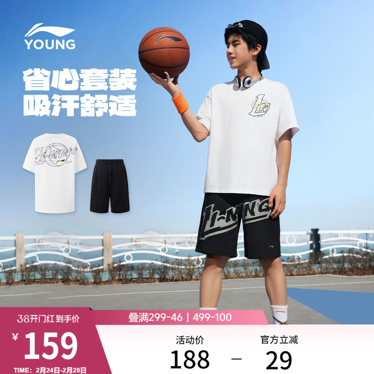 李宁童装套装男女小大童新款潮流篮球系列套装宽松舒适宽松夏童装