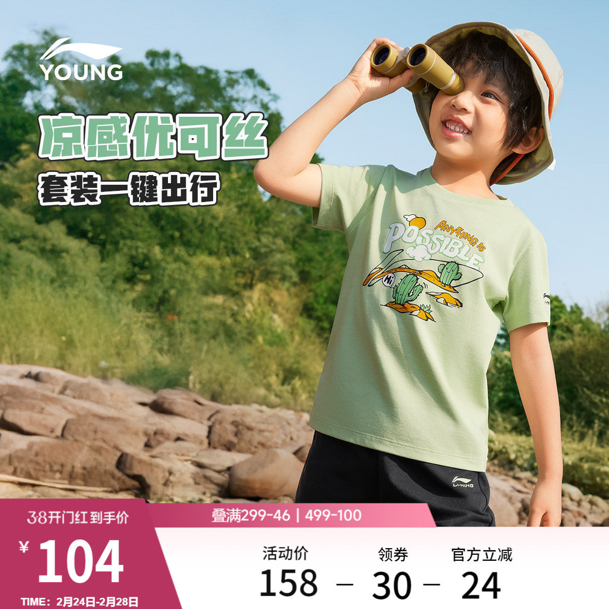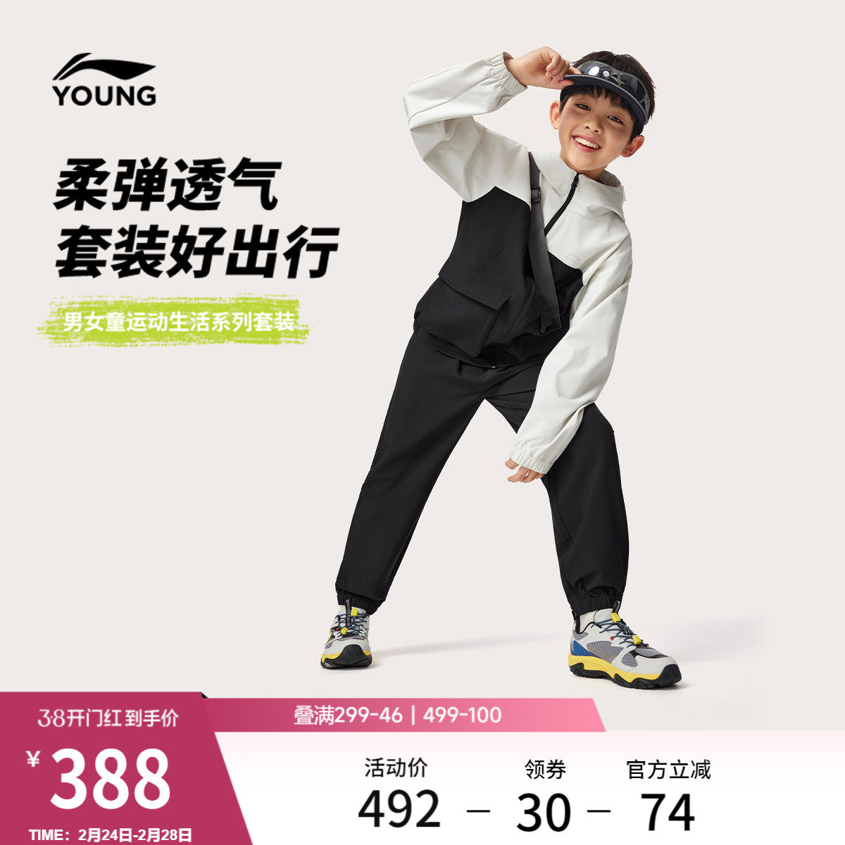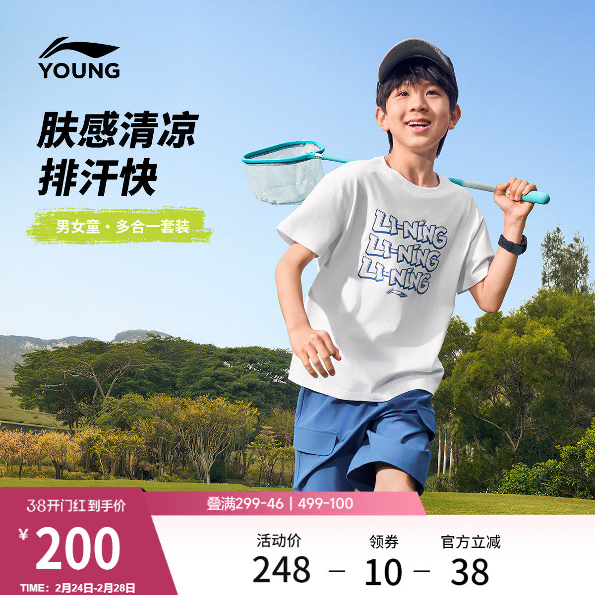 李宁童装套装男小大童当季新款综合体能系列冰感舒适吸湿排汗童装