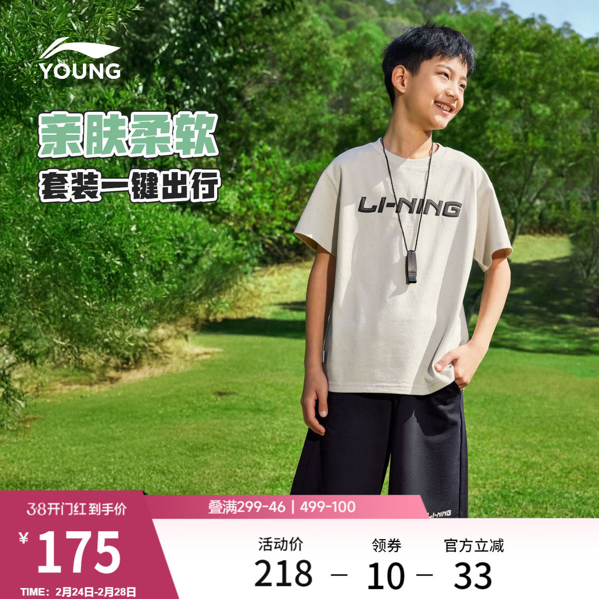 李宁童装套装男小大童新款运动生活系列套装宽松上衣裤子夏季童装