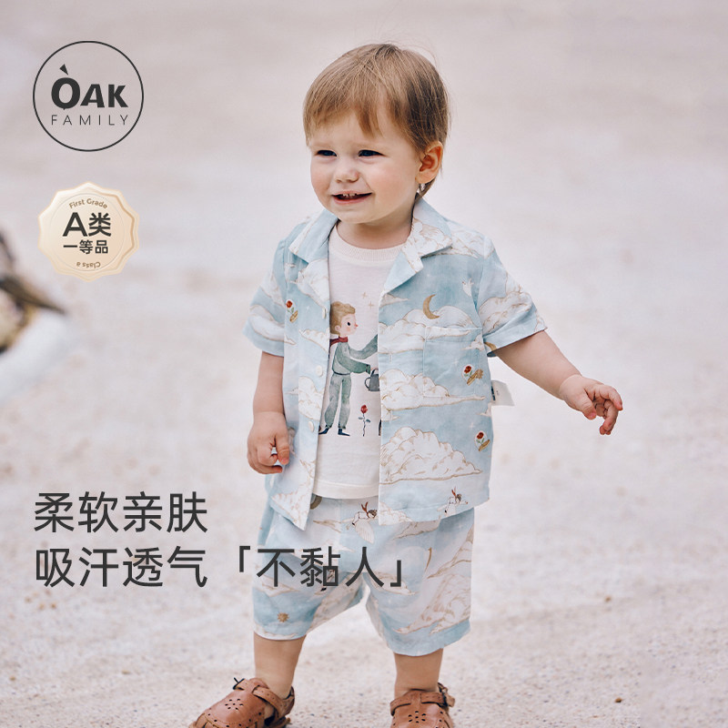 Oak Family儿童家居服夏季薄款纯棉短袖童装套装男女宝宝宽松睡衣