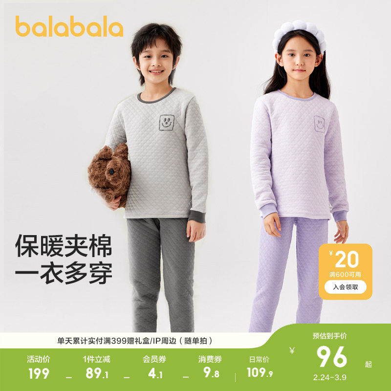 巴拉巴拉童装男童内衣套装儿童两件套新款2025秋冬装夹棉保暖舒适