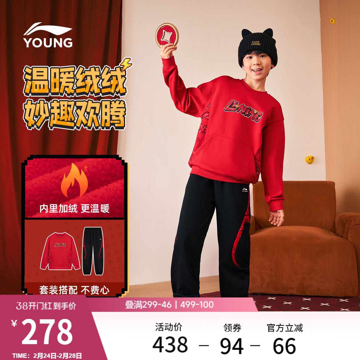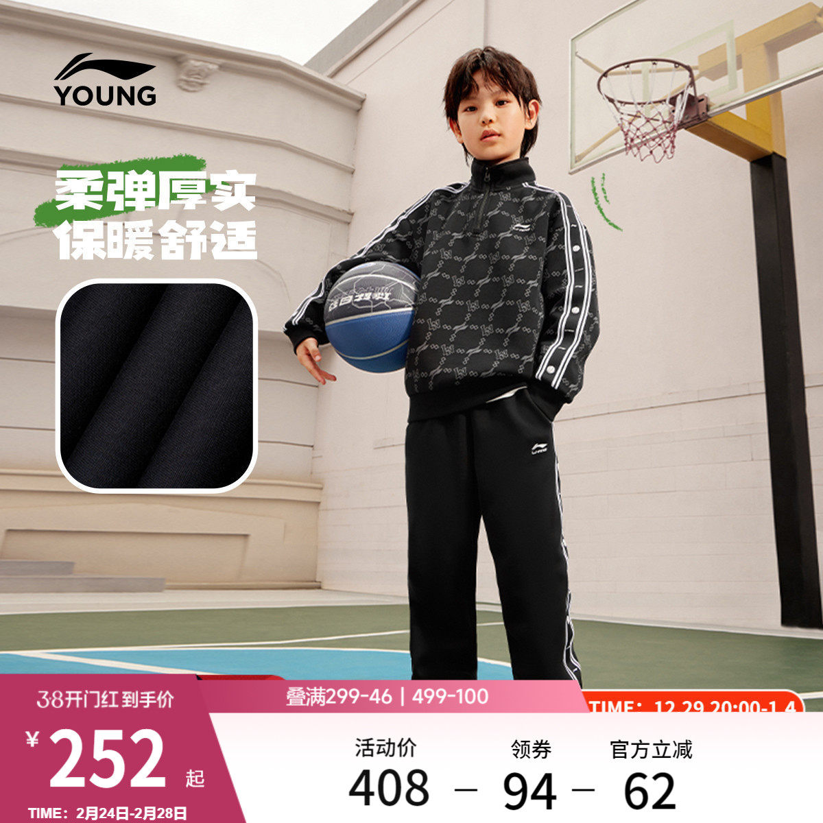 李宁童装套装男女小大童运动生活系列套秋冬加绒保暖休闲针织童装