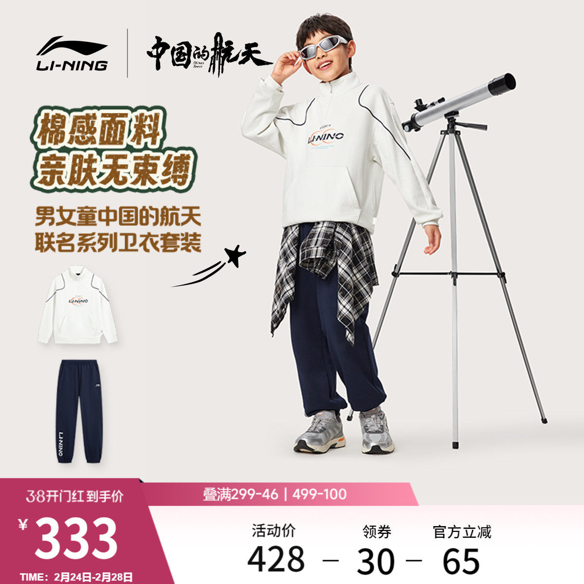 李宁童装套装男女大童新款常规运动生活系列卫衣卫裤春夏毛圈童装