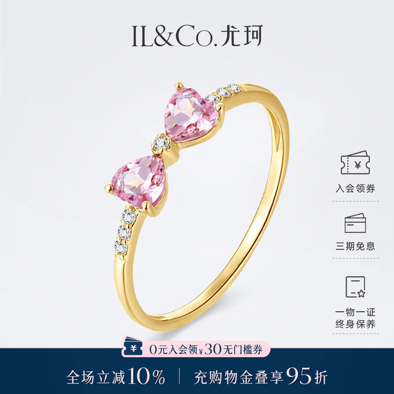 ILCO尤珂「露娜甜心」18K金天然粉碧玺戒指彩宝蝴蝶结石榴石女戒