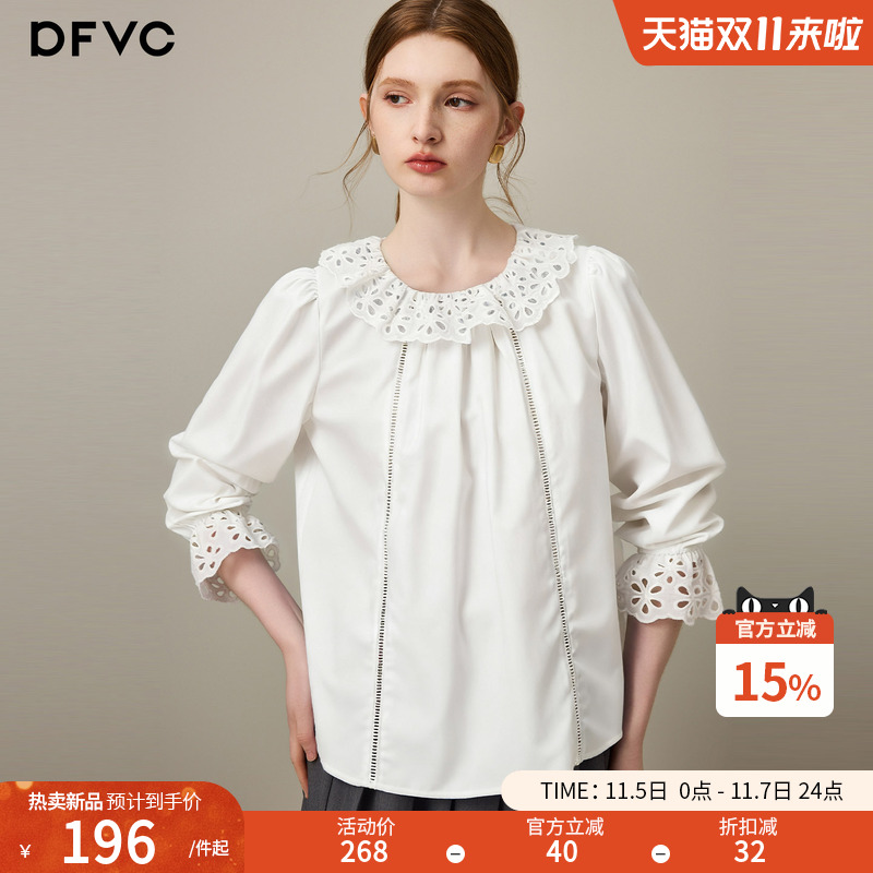 DHR 法式减龄气质娃娃领花边长袖白色衬衫宽松漂亮上衣女棉秋新款