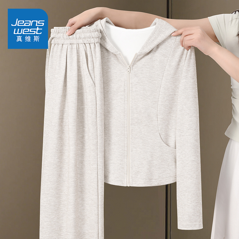 纯欲风休闲套装女2025春秋新款修身连帽拉链卫衣阔腿裤运动两件套
