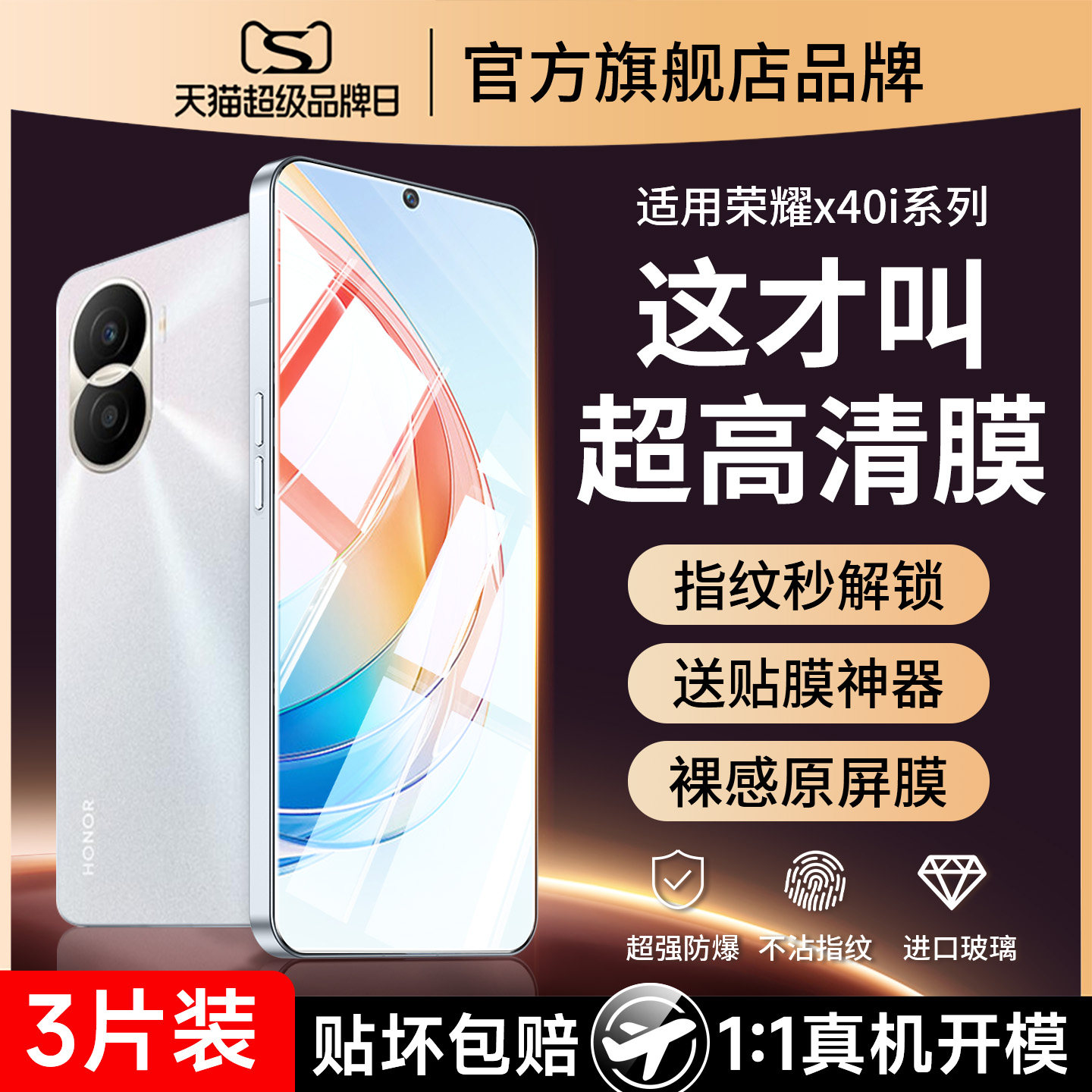 适用荣耀x40gt钢化膜x50i华为x40i手机x70x60x30x20x10max全屏honor9x8x系列v30v20畅玩70plus九205play6壳60