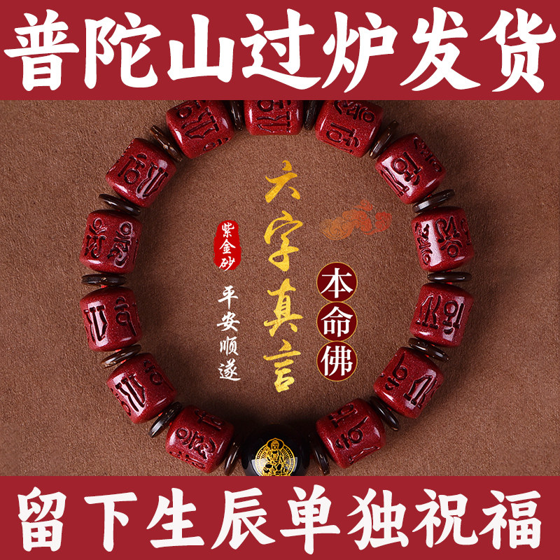 2026本命年手链高纯度朱砂手链女原矿紫金砂六字真言手串本命佛男